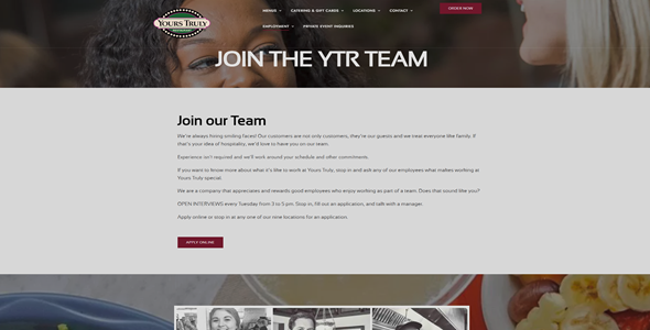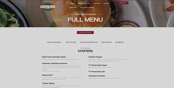 Yours Truly Restaurantytr.comModern DesignPowerful HostingQuarterly BackupsAwesome SupportTake a Closer LookHomeMenuBeachwood RestaurantOur StoryEmploymentCatering and Gift CardsContact UsSee More Examples of Our Work Below Little Punderson Lake Taste of Juanita Yours Truly Restaurant Seeds of Literacy Schoolyard Studio Chestnut Hill Home CutieKins Dream Home Construction Medco Coated Products Grosel Industrial Sales
